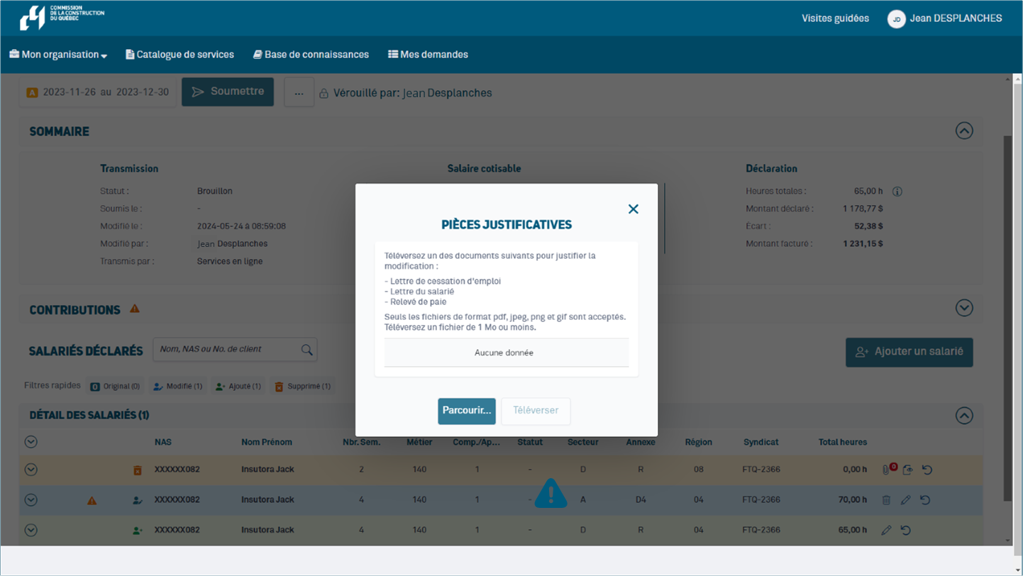 - Ajouter une ou des pièces justificatives à la suite d’une modification (si requis).